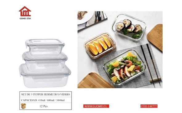 Set De 3 Tupper Hermetico Vidrio